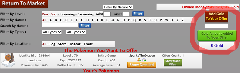 AND your done ^^ the amount of gold u give to the offer will go to the person who accepted it and u get the pokemon