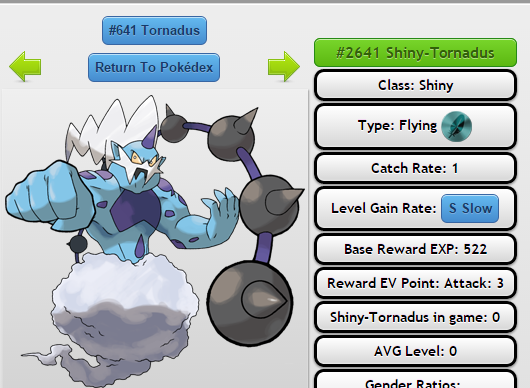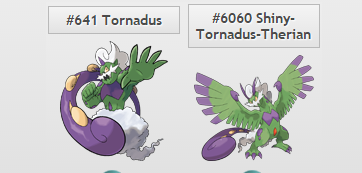 The image of Tornadus Shiny is a thundurus not a tornadus it even shows it on the map. I put it show it in the map and Pokedex and i put the tornadus there to show what it looks like ignore Tornadus-T.