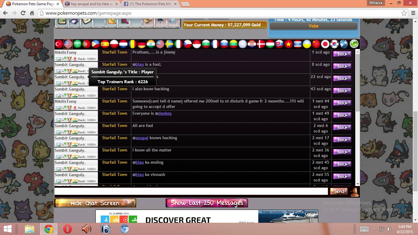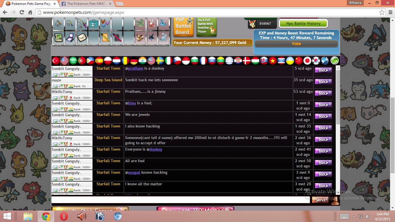 take the screen shot of his acc that he is say ch is a fool + his user name in hindi he's saying that blau's destoryement