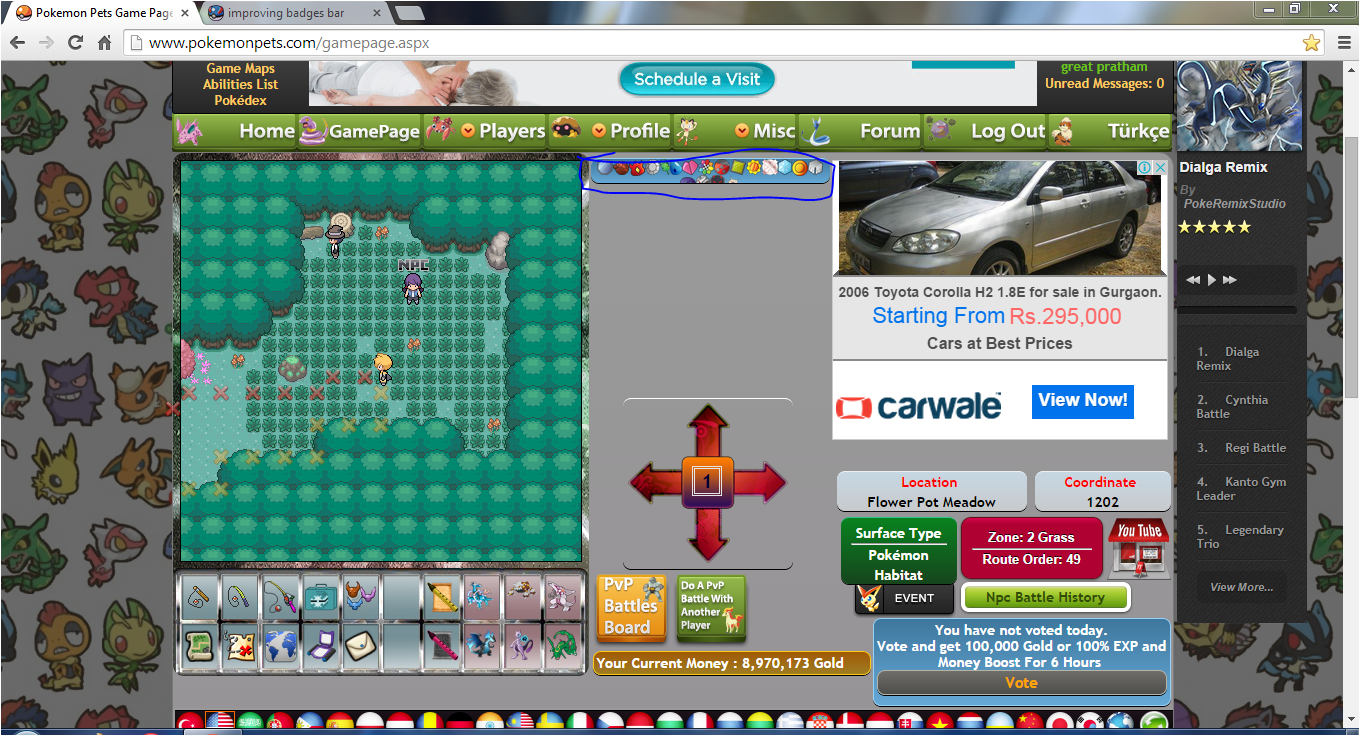 (2015-05-13, 09:45 PM)CeFurkan Wrote:but the arrow is going down to the top of the poke pic Cef , so if the height of the bar expanded a little downwards the badges will be filled enough in the 2nd row so it won't be cut to half(2015-05-10, 08:35 PM)pharoah Wrote:(2015-05-09, 02:31 PM)CeFurkan Wrote: ok then where it should be ? show me with screenshot pleaseit will in the same place my friend but will b diff in size ,2 cm more in height above the pokemon pic as shown in arrow direction in screen shot