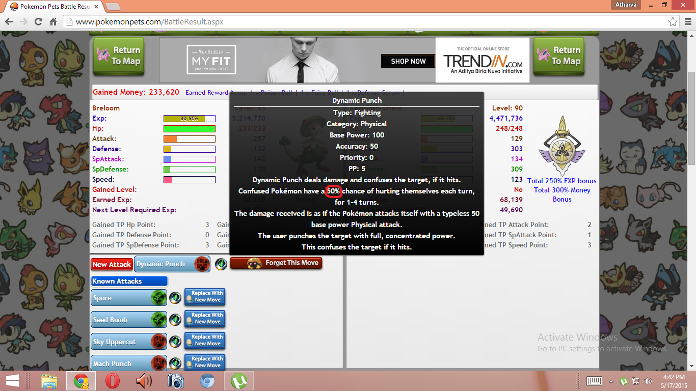 In the description of dynamic punch , it shows that confused pokèmon have 50% chance of hitting themselves each turn whereas in all other moves that confuse a target it shows they have a 35% chance of hitting themselves , please fix this little error.Smile