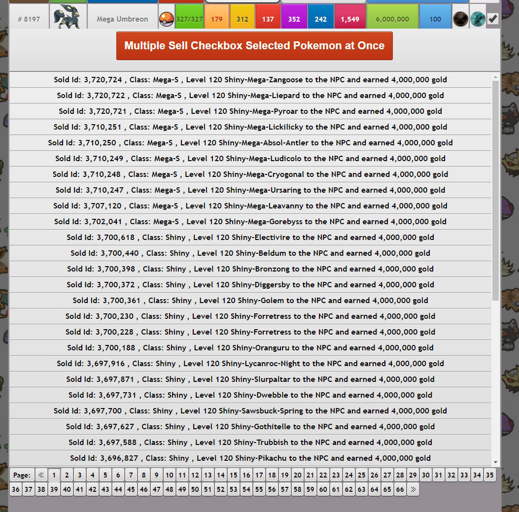 51: Now you can sell more than 1 Pokemon to the NPC at once. In order to sell multiple Pokemon at once, check the checkboxes on the right of the Pokemon in Set Your Pokemon Team page.