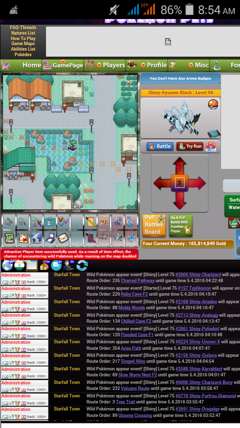 today i am going to capturing shiny kyurem black in the lack.(oak Town) and it is appear after a long time.then i am go to the pm center(throgh pm centre icon) for managing my team, when i change my lapras (hyper surf move pm) and come again in battle page.tgen shiny kyurem black are disappear and i am stay in front of pm cetre. i am not found any notice when i am remove hyper surf pm then it will disappear.please you can give me a shiny kyurem black for battle page.because i want capturing it .