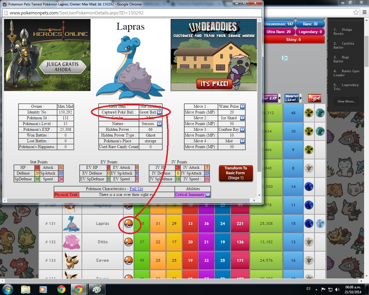 (2014-10-21, 09:28 AM)LegendsOfShadow Wrote: That Would make sense But I Think would Screw up the Pokedex if done that Way I mean in the Pokedex is tell you that you have that pokemon If Lapras or Different Pokemon are caught in different balls it mess up the Pokedex completely.